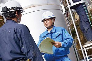 施工管理の先輩の声:現場監督として職人さんへの指示や書類作成などの仕事があります。工事が完了し形になったときは達成感があり社会を支える仕事に携わっている実感が湧きます。幅広い年代の人とコミュニケーションが取れる人、広い視野を持った人がこの仕事に向いていると思います。