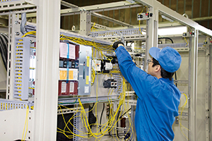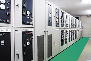 電力会社から届く電気をみなさんが使えるようにする配電盤や、電気の流れをコントロールする制御盤を設計・製造しています。板金・塗装、組立、検査、出荷まですべての工程を自社で行っています。製造した盤は公共施設や企業の工場、浄水場などに納入されています。