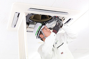私たちの会社は、皆さんが快適に過ごせるように、空調設備や、給排水の設備の仕事も行っています。たとえば、教室や体育館にあるエアコンや、工場やプールで使う水をきれいにしたりする設備も手がけています。