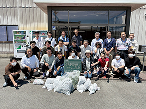 ②毎朝、会社前の道路を清掃しています。年1回近隣のゴミ拾いを行い、高崎市主催のクリーンアップ活動にも参加しています。