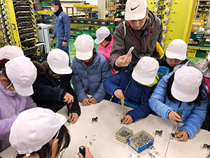 毎年、高崎市立中川小学校三年生のみなさんが工場見学に訪問してくれています。装置の動作や製作体験もしてもらっています。