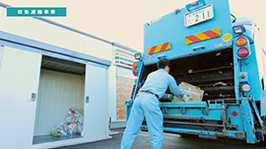 ショッピングセンター、コンビニエンスストア、病院、事務所などから排出される生ごみ、紙ごみ、粗大ごみなどの一般廃棄物を収集しています。収集された廃棄物は市の清掃工場や自社工場に搬入されます。