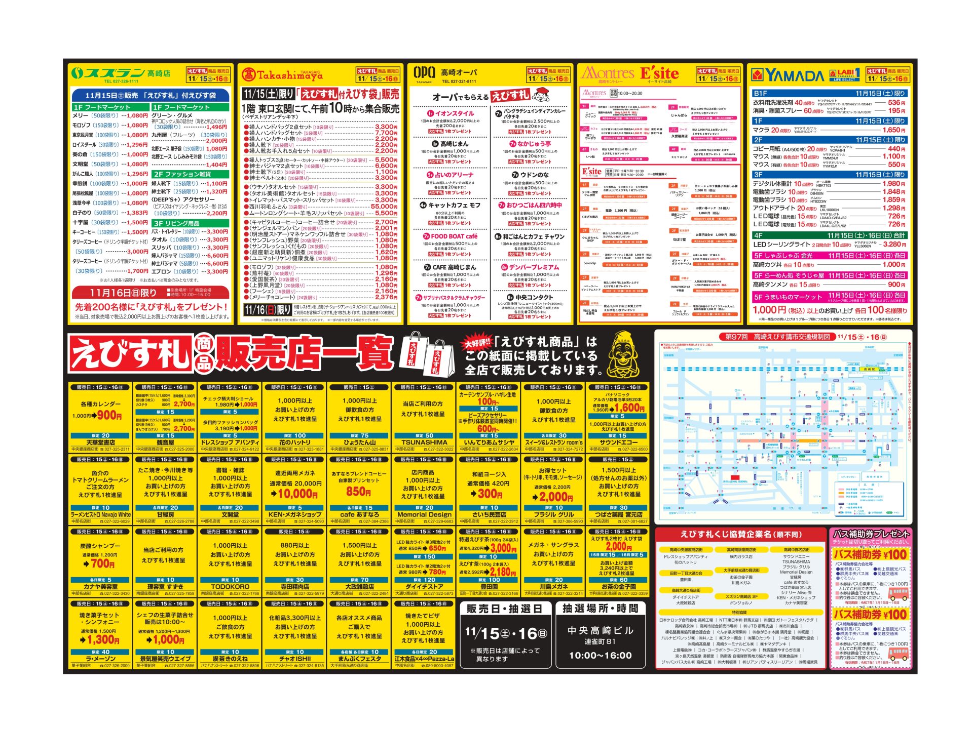 中心商店街の個店・大型店にて、お得な「えびす札」付き商品を販売。貼付された「えびす札」は豪華景品が当たる抽選会の抽選券!