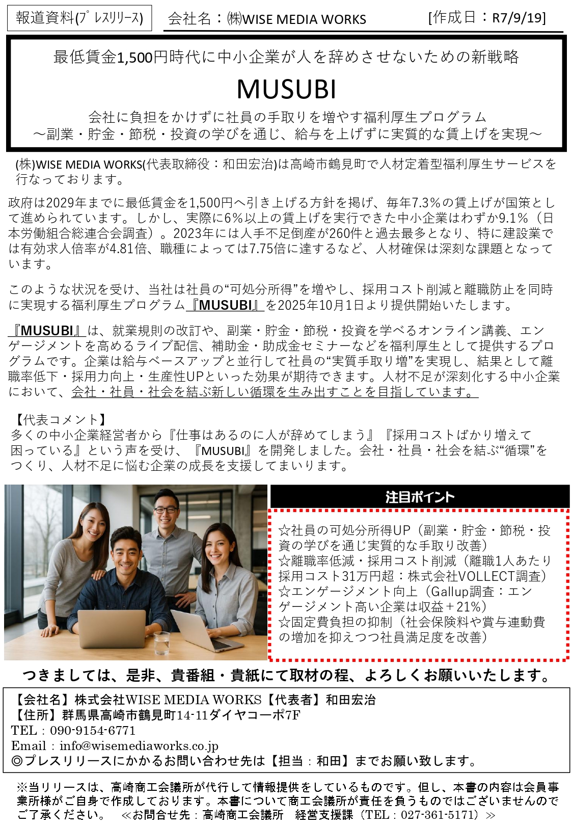 最低賃金1,500円時代に中小企業が人を辞めさせないための新戦略『MUSUBI』