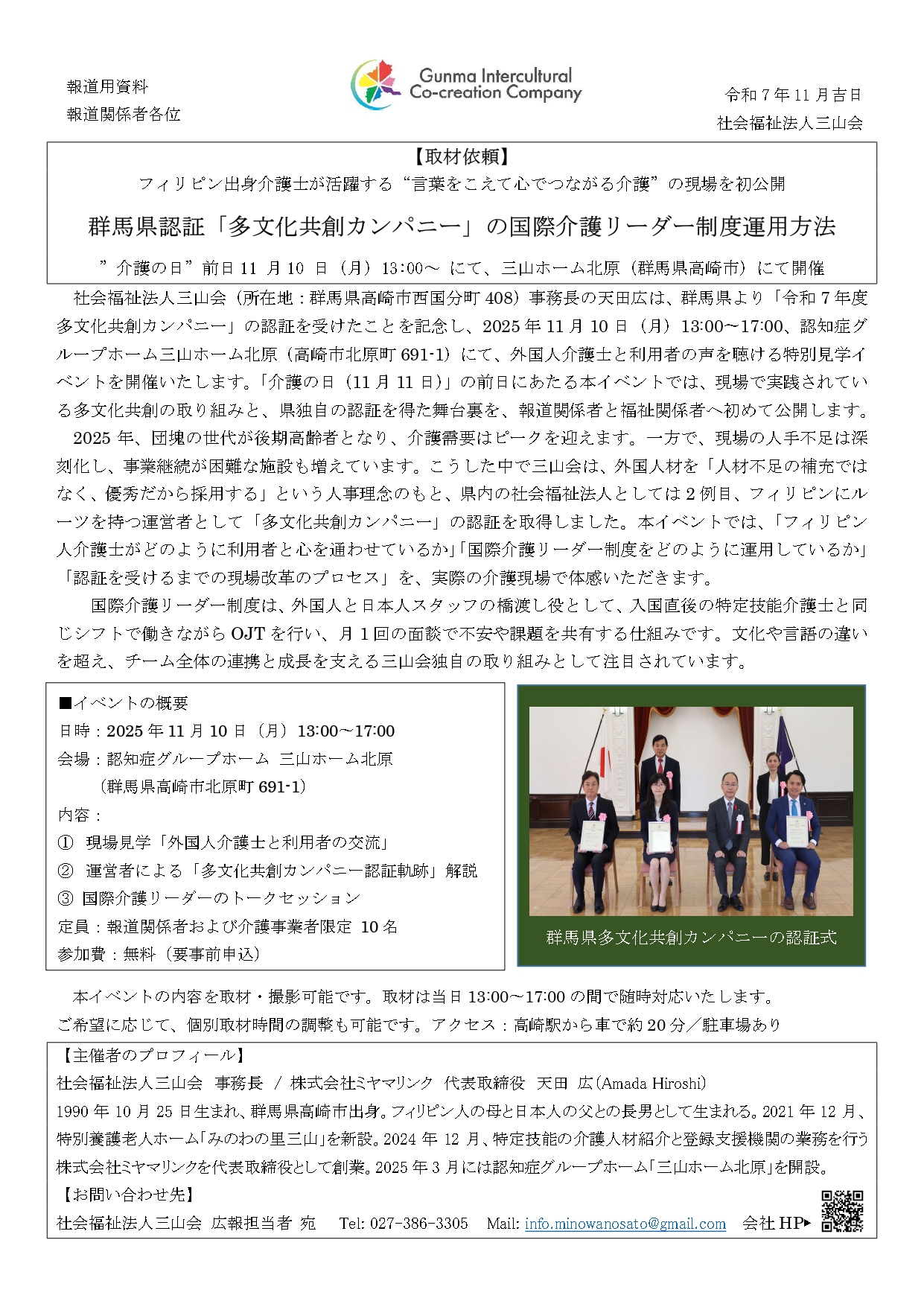 群馬県認証「多文化共創カンパニー」の国際介護リーダー制度運用方法