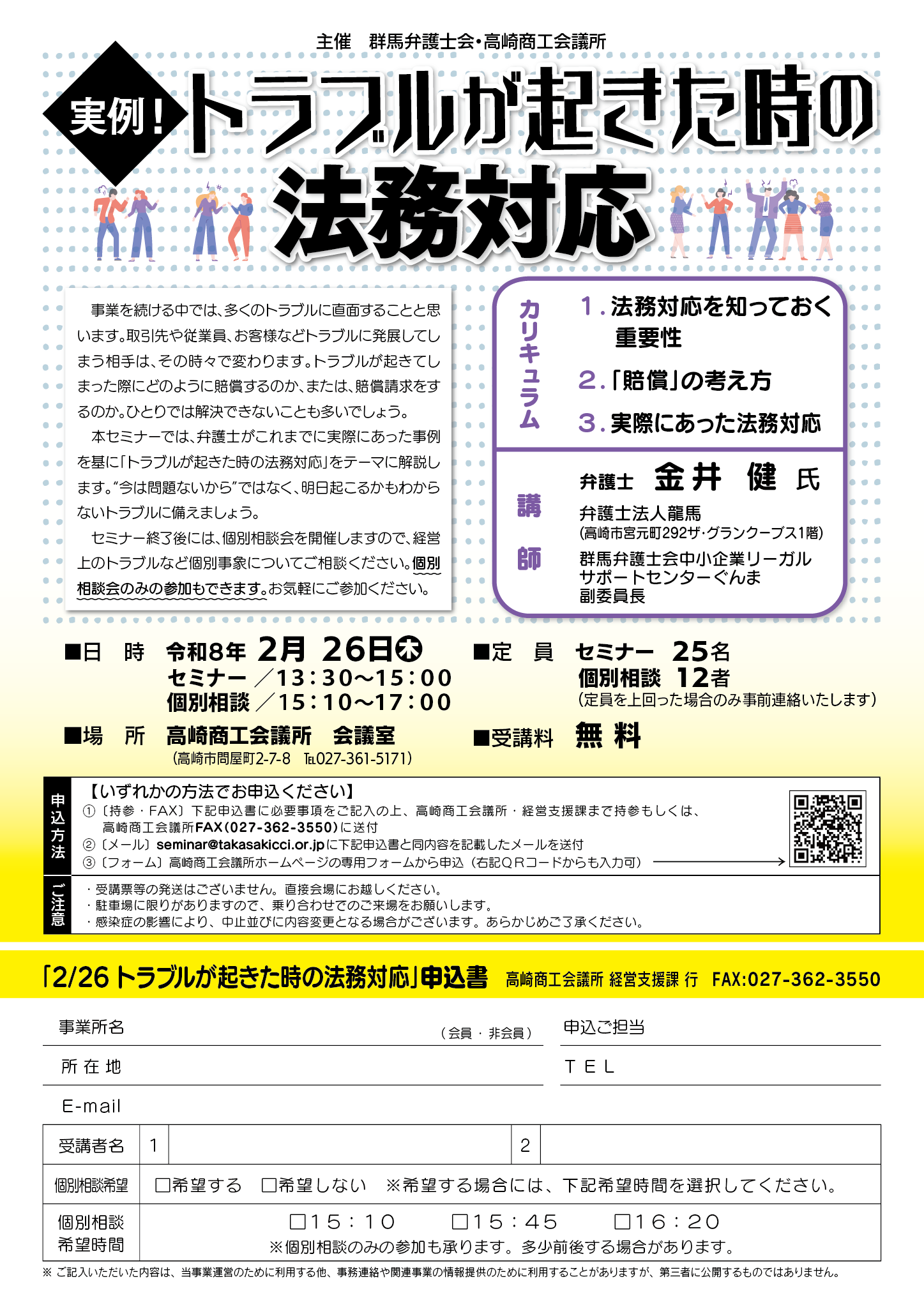 ● メール (seminar@takasakicci.or.jp)に申込書と同内容を記載したメールを送付