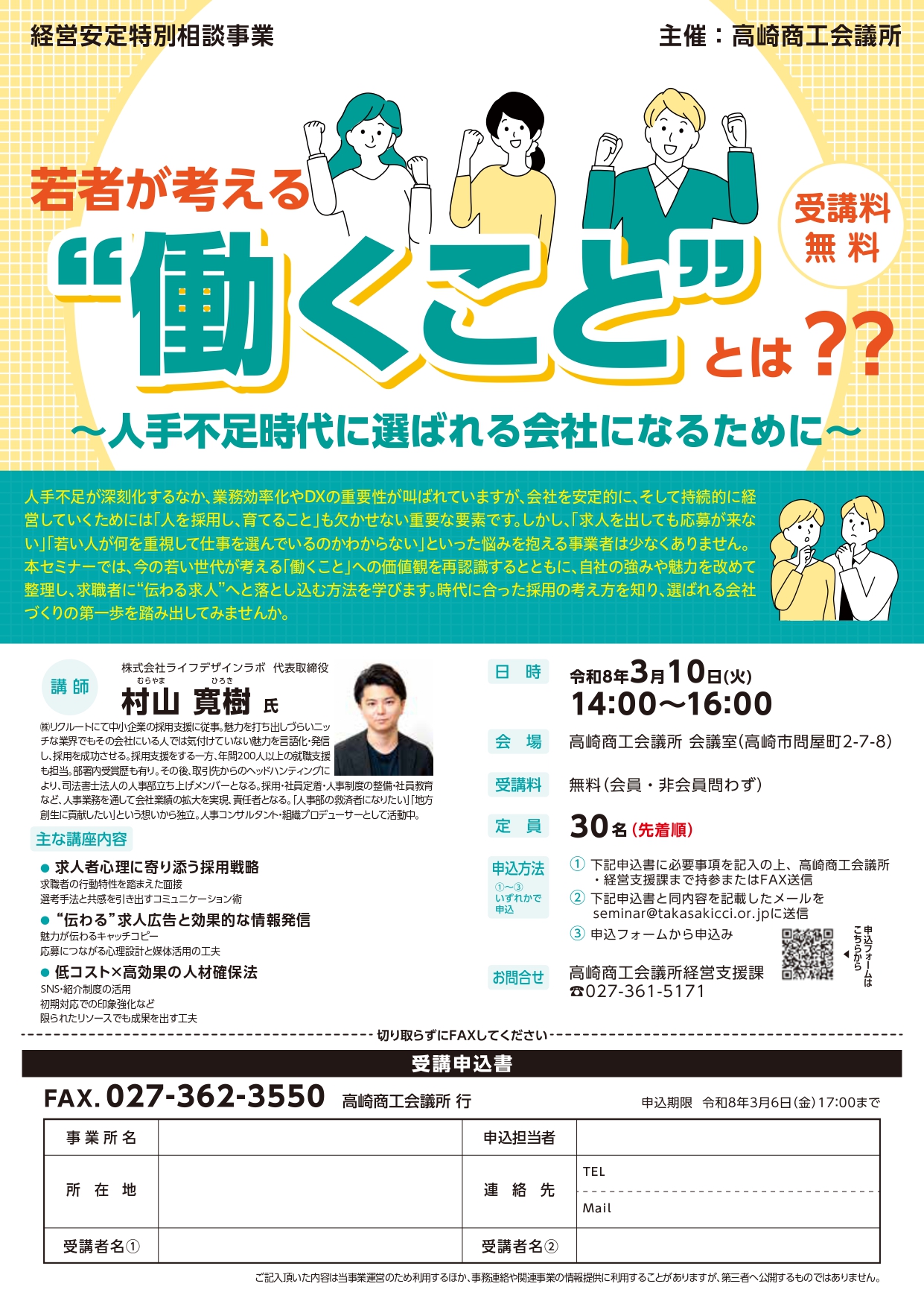 本セミナーでは、今の若い世代が考える「働くこと」への価値観を再認識するとともに、自社の強みや魅力を改めて整理し、求職者に”伝わる求人”へと落とし込む方法を学びます。時代に合った採用の考え方を知り、選ばれる会社づくりの第一歩を踏み出してみませんか。